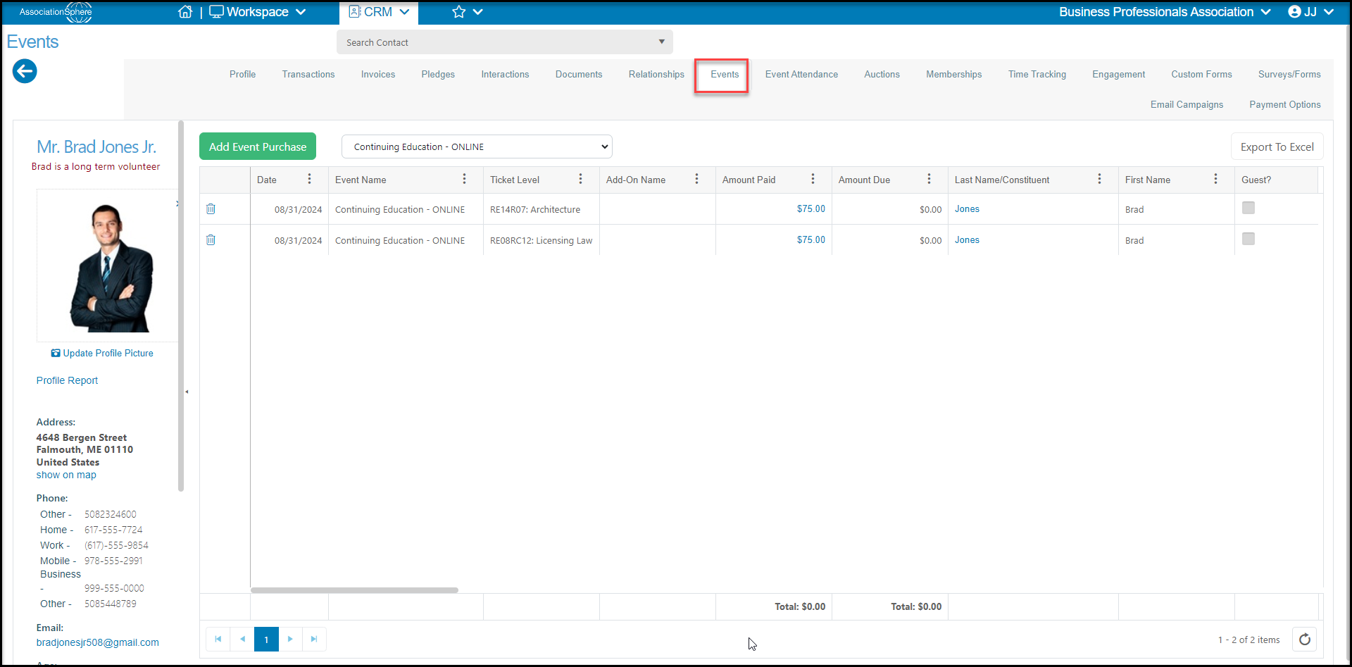 You can also see event registrations for a particular constituent in the Events Tab in their record. Use the pull-down menu at the top of the grid to select the event.