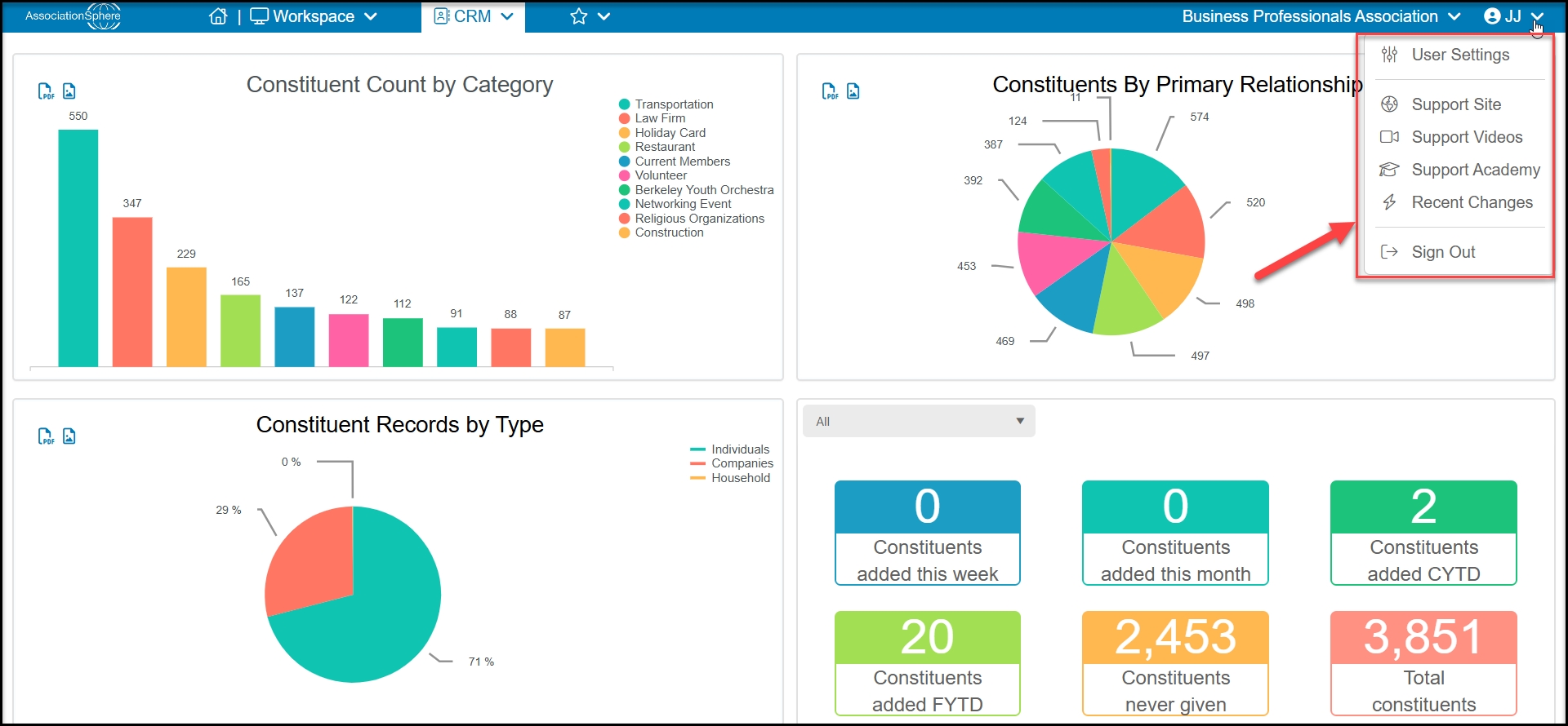 The support site links to the knowledge base with articles covering all the modules and activities in AssociationSphere. New support tickets can also be generated from this link by clicking on “New support ticket.”