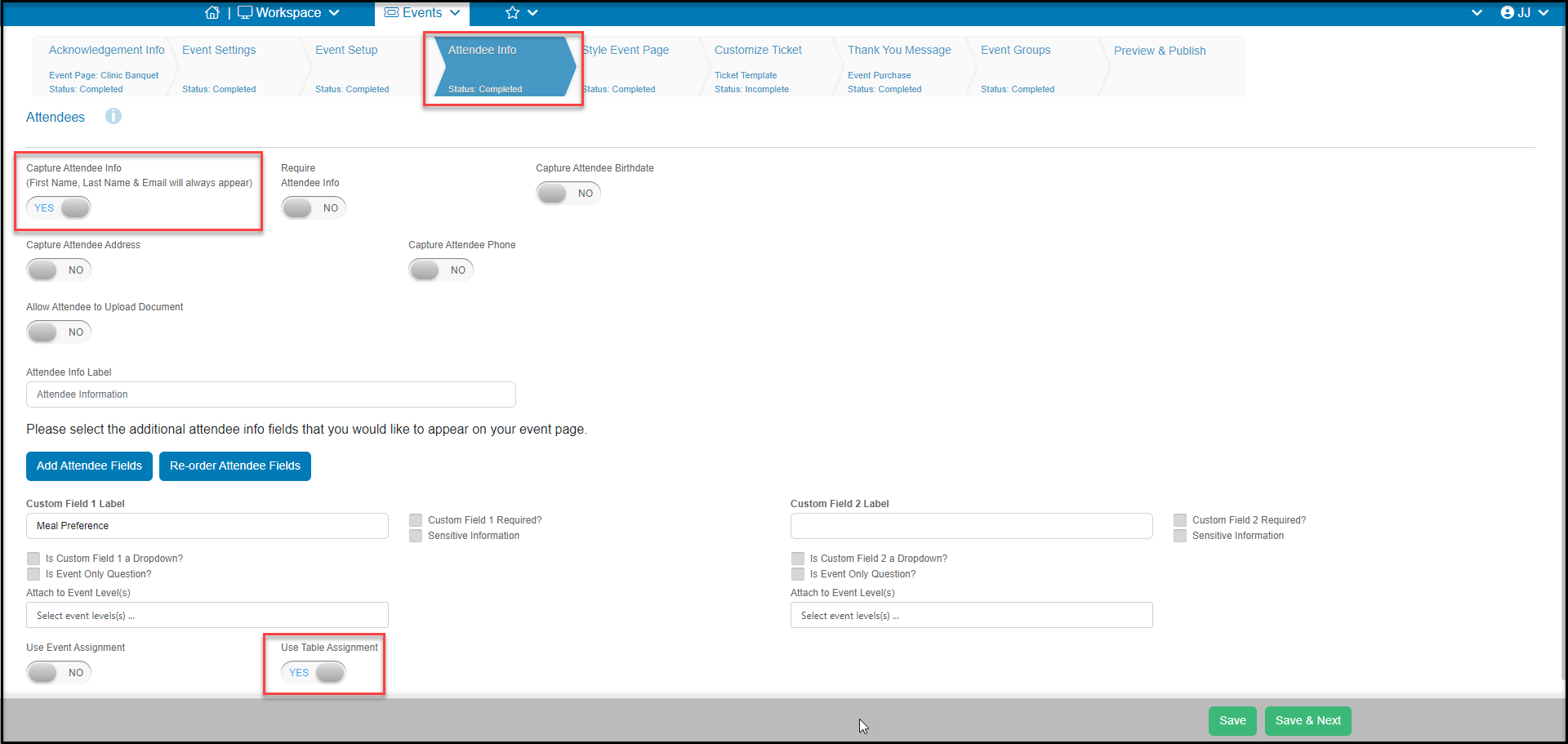 - Mark the toggle Capture Attendee Info to YES.