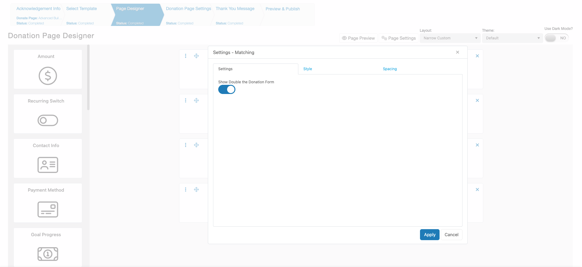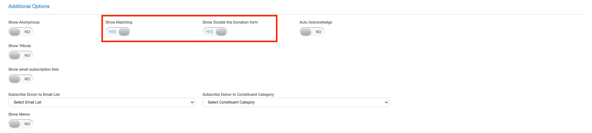 Once enabled, an additional toggle titled Show Double the Donation Form will appear.