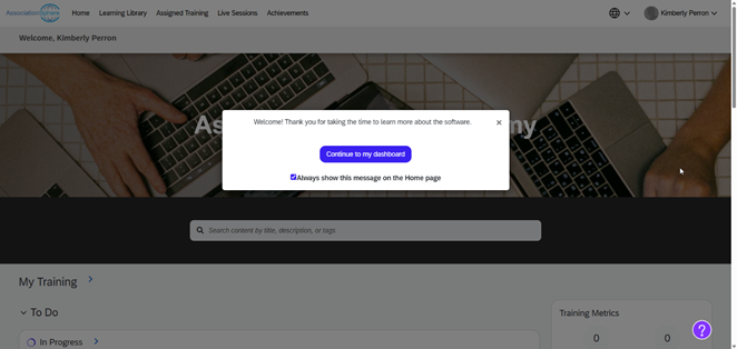 - You can click Continue to my dashboard. This message ca be turned off by unchecking “Always show this message on the Home page.”