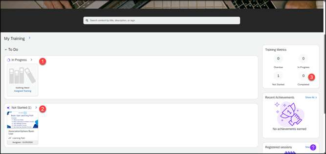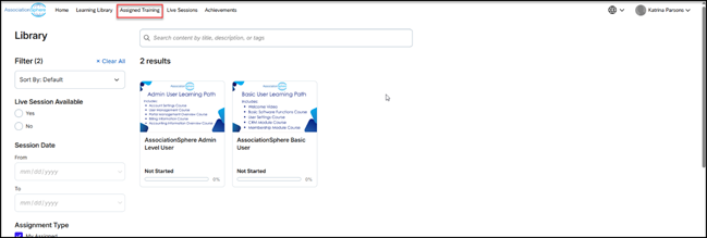 - Under Assigned Training, you can see any learning paths or courses assigned to you.