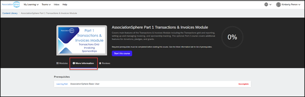 - As soon as your complete the first learning path, you will automatically be assigned to the Advanced Users Learning Path. This learning path has only one required course, Part 1 of the Transactions & Invoicing Module, but also includes optional courses on the Constituent Portal, Events, Email Marketing, Surveys/Forms, and Part 2 of Transactions & Invoicing. You can take these courses in any order.