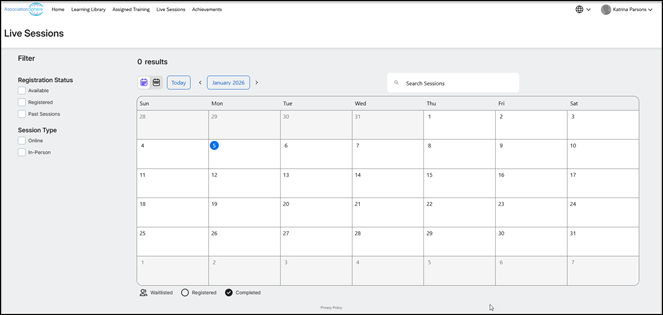 - You can filter by those assigned by AssociationSphere or self-enrolled.